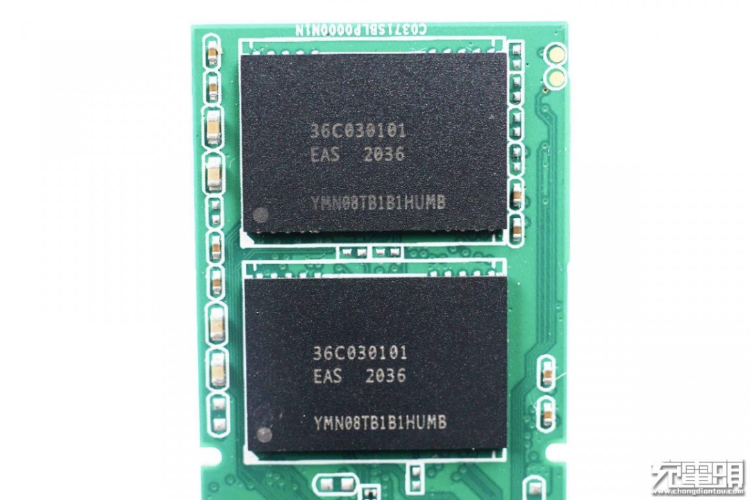 闪存颗粒来自长江存储,丝印YMN08TB1B1HUMB,单颗容量128GB。