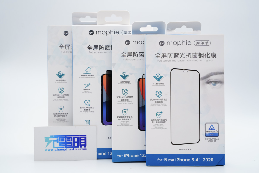 这是mophie为iPhone推出的钢化膜产品,钢化膜除了可以保护手机的屏幕外还可以起到杀菌防蓝光的作用。