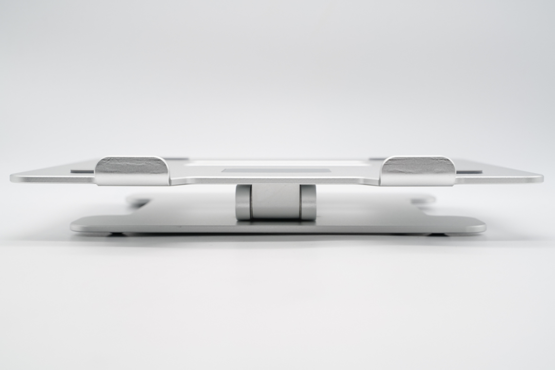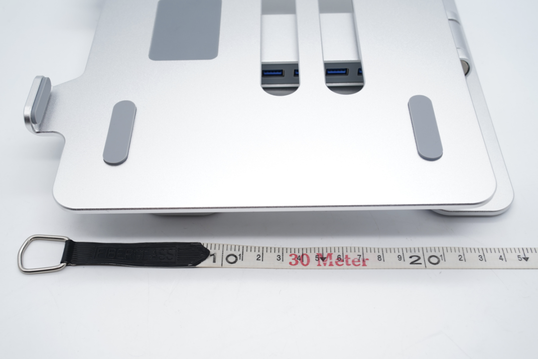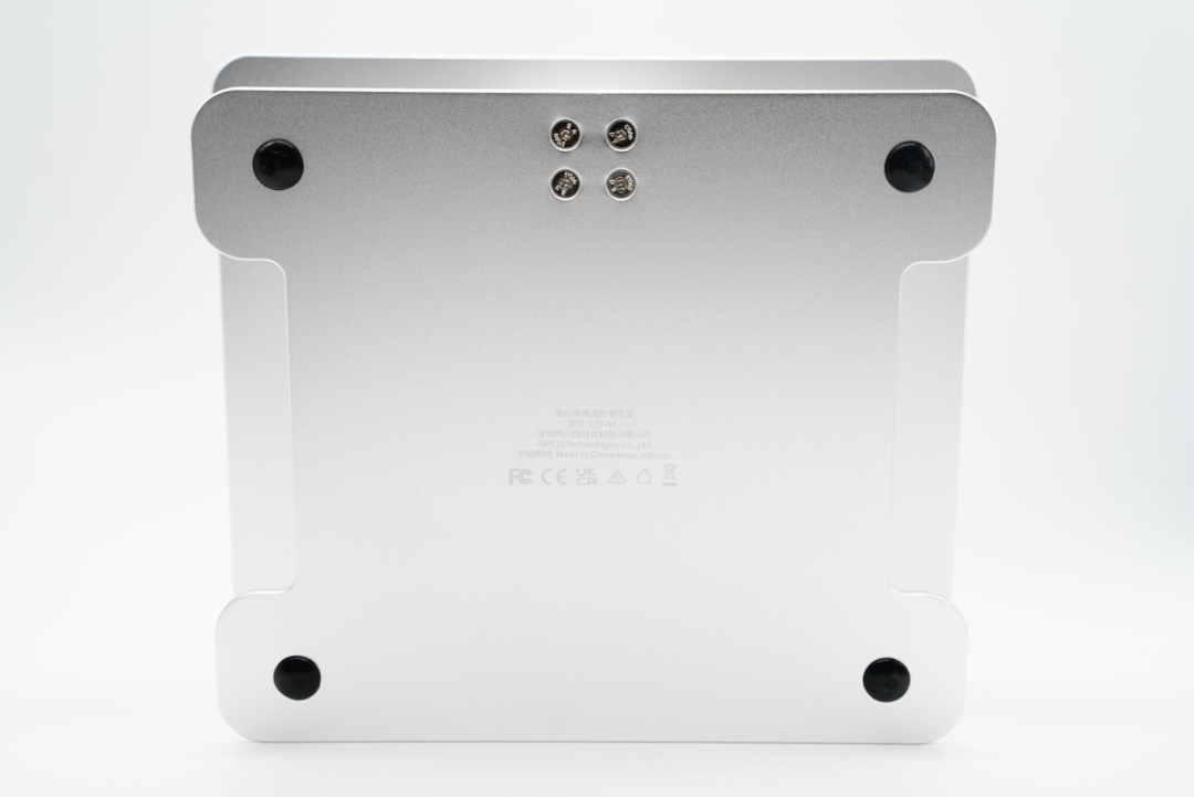 ORICO 奥睿科的这款笔记本电脑增高折叠支架拓展坞整体采用铝合金材质打造,奠定了为笔电散热的基础。整个笔记本电脑增高折叠支架分为三个部分,底座部分、升降臂以及承载笔记本电脑的背板。底座底部的 4 个角落均带有硅胶垫,放在桌面上可以起到防滑的作用,背板 4 个角落和中间均带有硅胶垫,笔记本放上去可以起到防滑的作用同时也可以避免划伤笔记本的外壳。