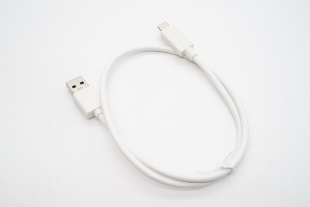 包装盒内附带了白色的线材,线材类型为 USB-A to USB-C。