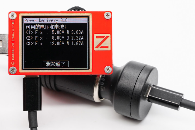 使用ChargerLAB的POWER-Z KT002读取车充的快充协议,实测支持PD、Apple2.4A、QC2.0、QC3.0、AFC、FCP、MTK-PE等快充协议。