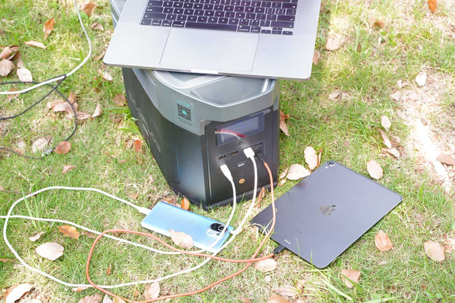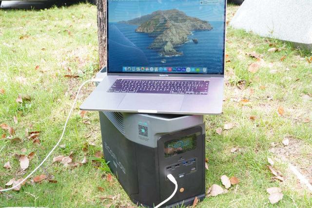 EcoFlow正浩 德 DELTA Max 户外电源自带 USB 接口,面向的自然是一些电子设备,得益于 USB-C 百瓦的功率支持,在面向 MacBook Pro 16 这样的大功率需求的笔记本电脑也可以从容应对。