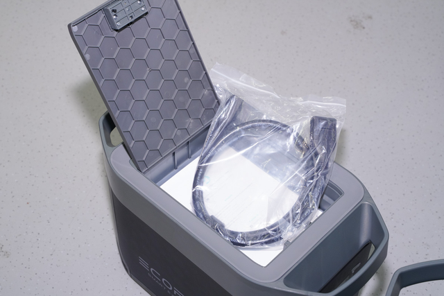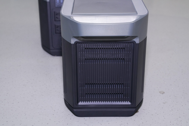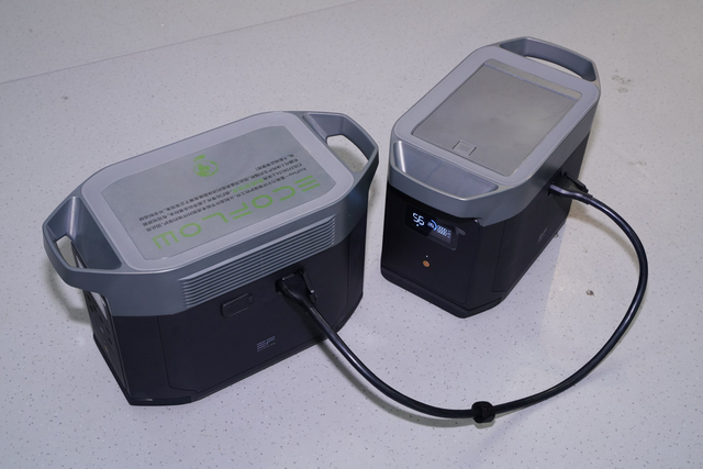 加电包体积略小,正面均带有官方 EcoFlow的品牌 Logo,可以理解为加电包在主机的基础上去掉了电池外的其他组件。