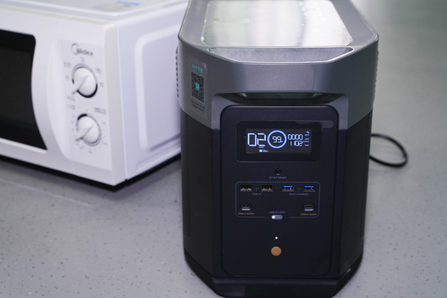小编实际使用微波炉测试测试输出功率可以达到 1100W,为微波炉供电对于EcoFlow正浩 德 DELTA Max 户外电源来说是小菜一碟的事情。