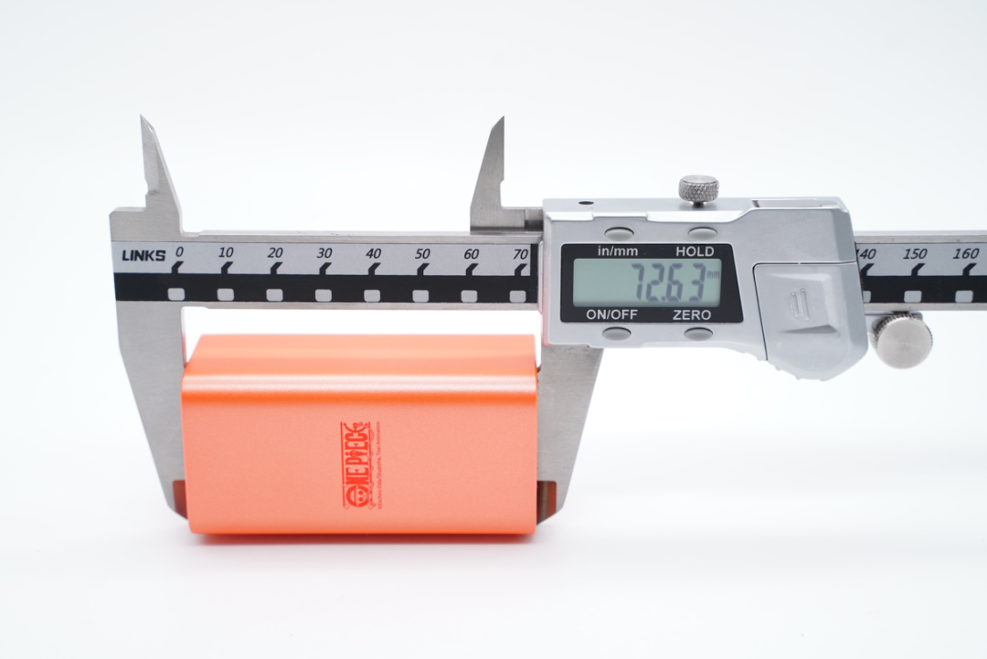 使用卡尺实测Anker航海王65W氮化镓充电器的长度约为72.63mm(不含插脚)。