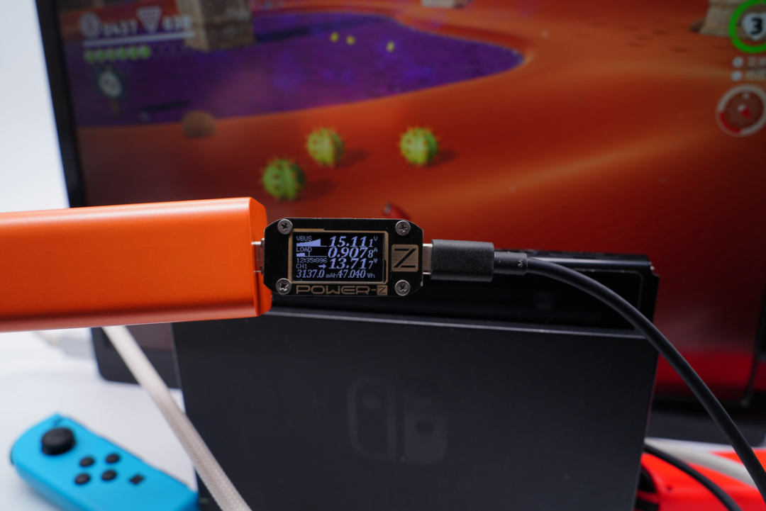 USB-C1支持65W快充,支持15V3A PD快充档位,实测可以激活Switch的底座TV模式。