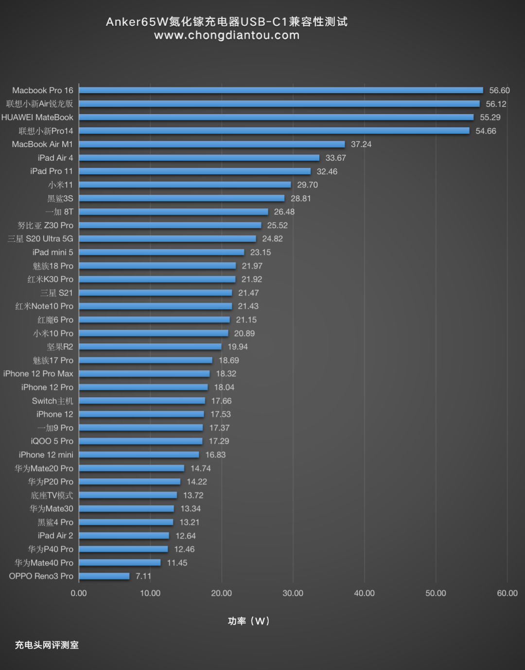 魅族18 Pro的功率最高,小米11和红米K30 Pro紧随其后,整体来看USB-A对各个设备的快充支持情况表现很好。