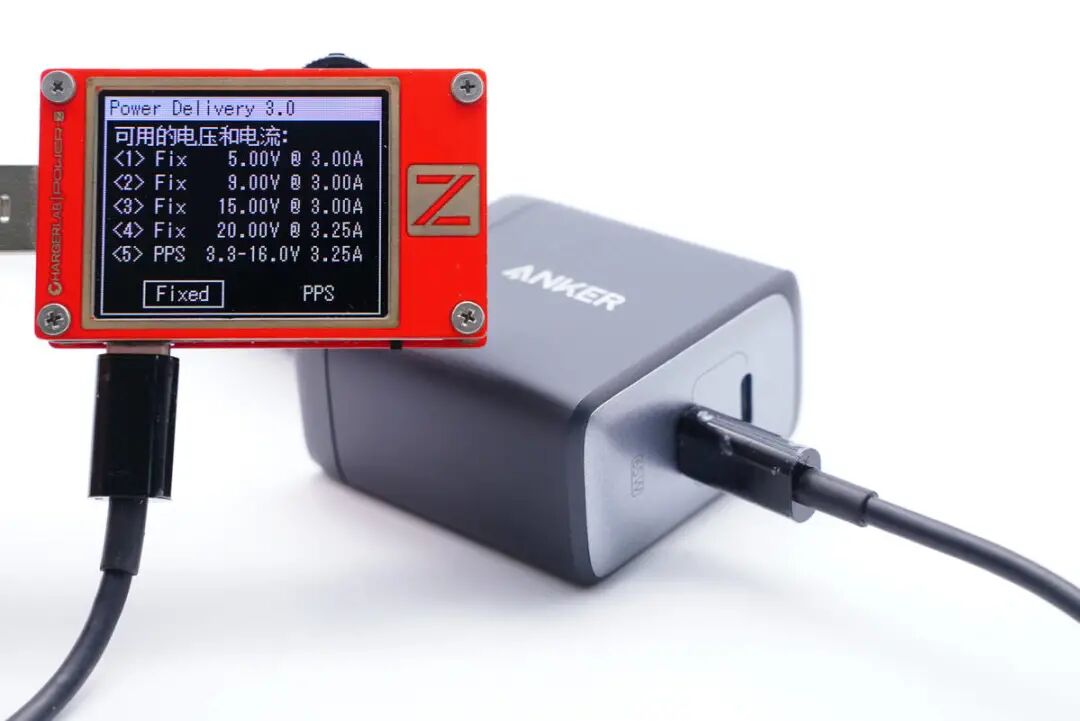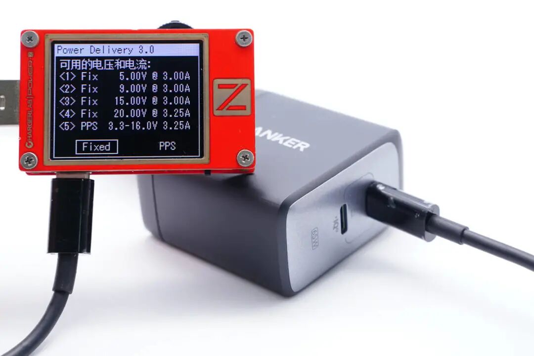 当充电器触发PD快充输出时可以提供5V3A、9V3A、15V3A、20V3.25A四个PD固定输出电压档,以及3.3-16V 3.25A一组PPS档位。