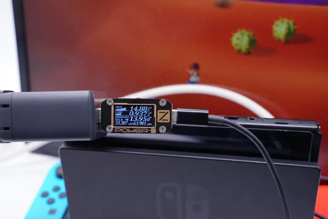 因为充电器支持65W输出功率,自然支持15V3A快充输出档位,可以成功激活Switch的底座TV模式。