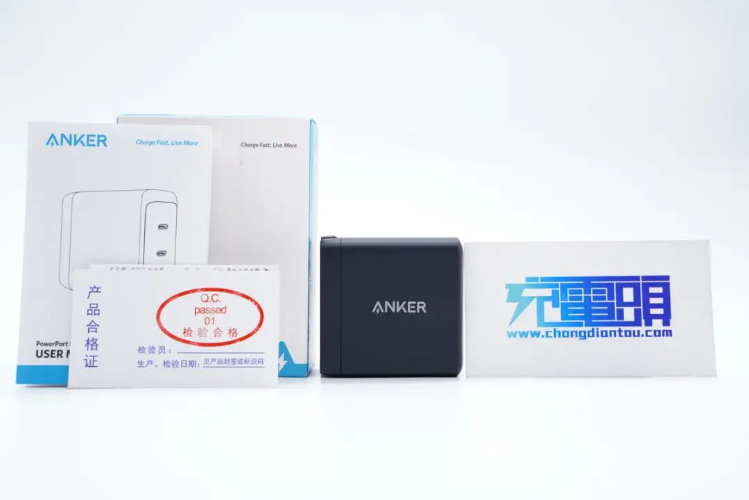 直接打开包装盒,内部除了充电器本体外,还带有产品使用说明书以及产品合格证书。