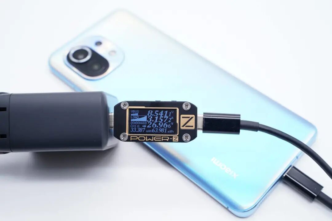因为充电器支持PPS快充,所以为小米11可以提供近27W的快充功率。