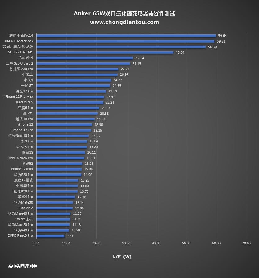 测试数据汇总,整体来看对大部分设备的快充兼容性都不错,只是对小米10 Pro和红米K30 Pro充电时功率在13W左右。