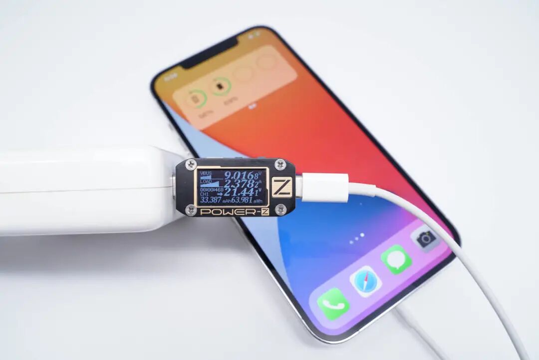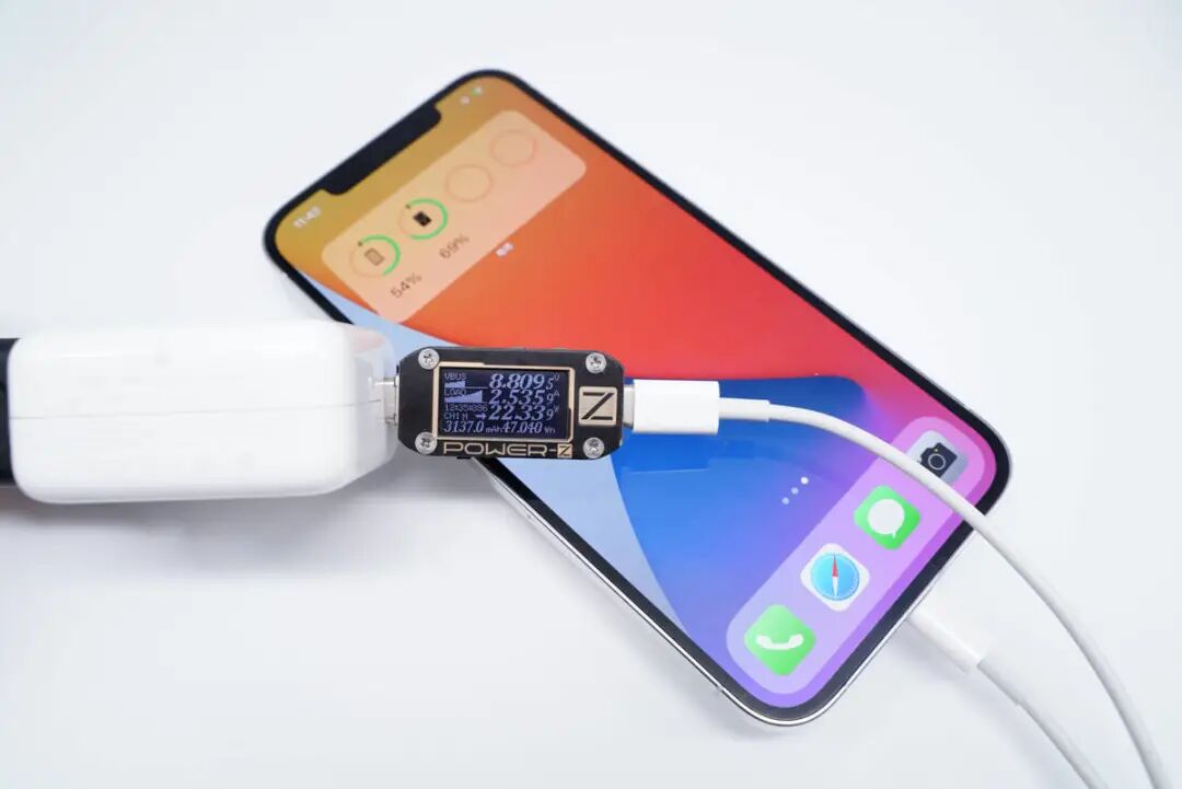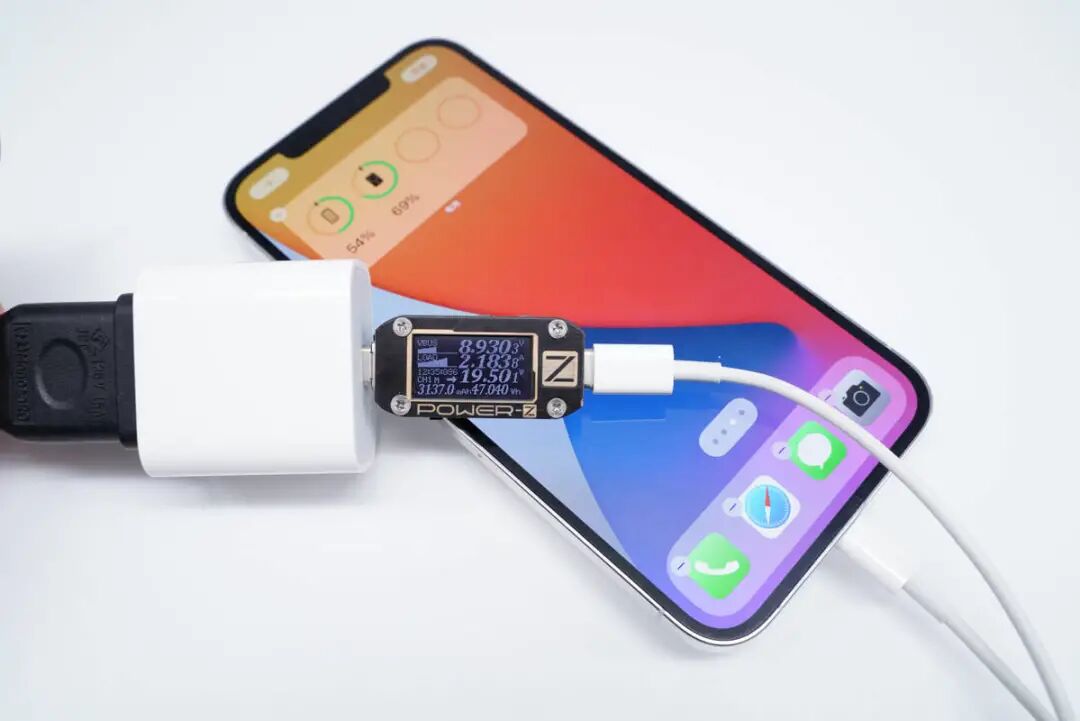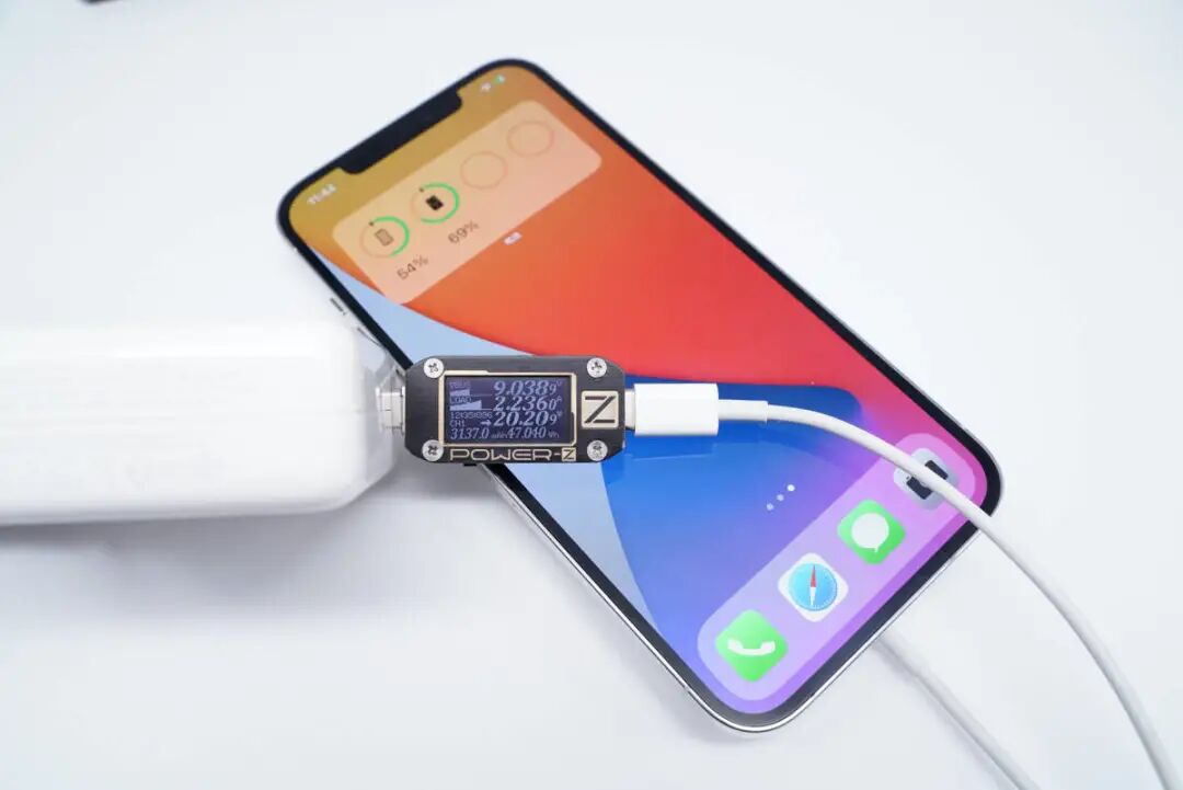 将充电器换成苹果20W PD充电器,相较于苹果18W充电器的功率有所提升。