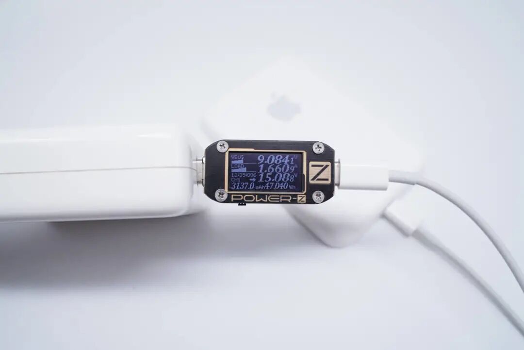 最后将充电器更换成苹果96W PD充电器,功率为9.02V 2.26A 20.41W。