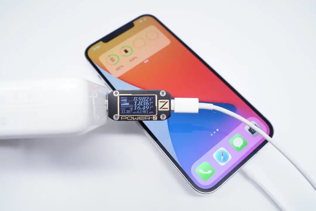 将充电器更换成苹果61W PD充电器,功率为20.47W。
