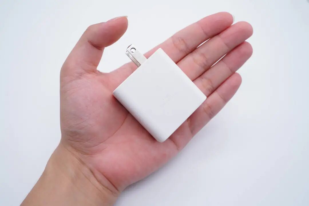 可以得出充电器的三围参数为50x47.95x27.91mm,充电器的体积约为66.91cm³,以最高输出65W计算,功率密度约为0.97W/cm³。