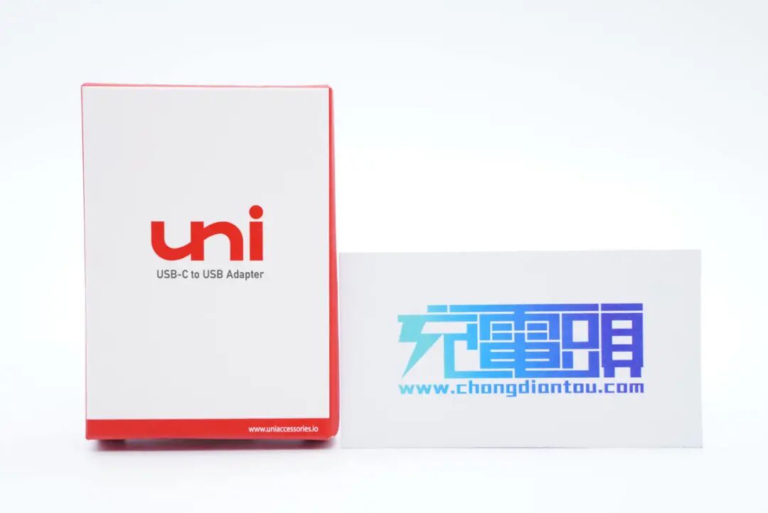 介绍来自uni的转换器,包装盒正面是uni的品牌Logo。