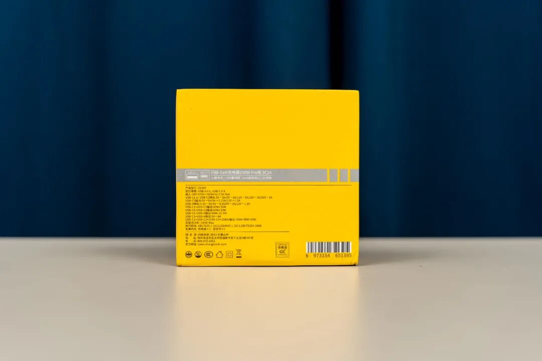 充电器的包装很简单,纯黄的配色,底部有闪极的LOGO。