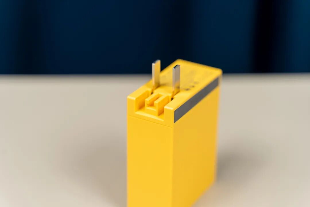 闪极这款100W氮化镓四口充电器设计非常惊艳,黄灰撞色搭配靓丽显眼,充电器两面的冷感设计斜纹处理,手感舒适,加分百分百,更令颜值爆表。100W的强劲动力浓缩到如此小的体积之中,真正是“闪亮科技,极客风范”。