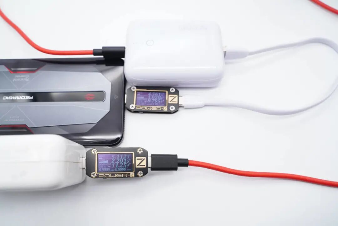 同时使用USB-C和USB-A为2台手机充电,实测可以正常充电。