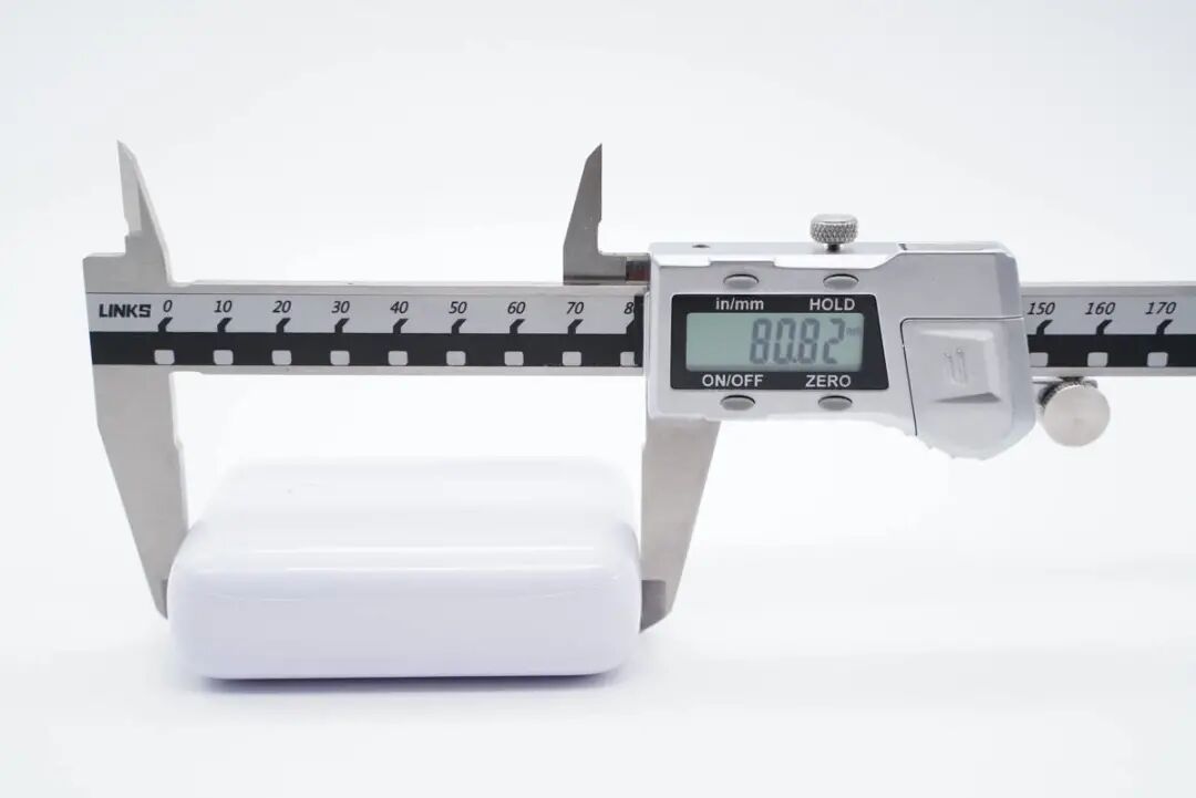 尺寸方面使用卡尺实测充电宝的长度约为80.82mm。