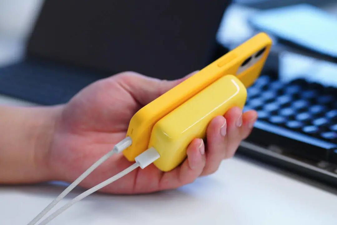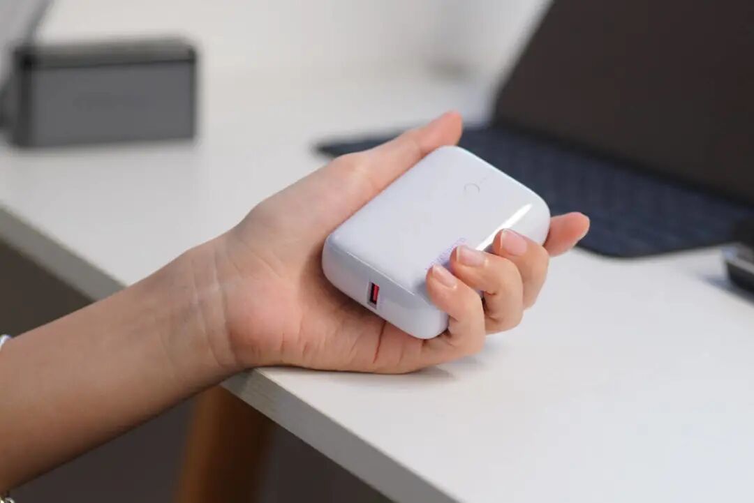 一只手拿着两个移速20W迷你充电宝也感觉不到压力。
