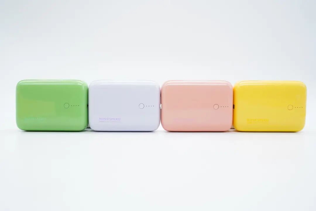 此次移速更是在充电宝的配色上面下了功夫,新款20W迷你充电宝拥有抹茶绿、罗兰紫、樱花粉、柠檬黄四种配色,不仅如此,就连包装内附带的快充线也采用了相同的颜色格调。
