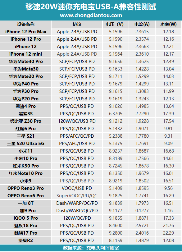 除了iPhone 12机型外还测试了数十款手机,基本均可以握手9V快充档位,暂未发现不兼容的情况。