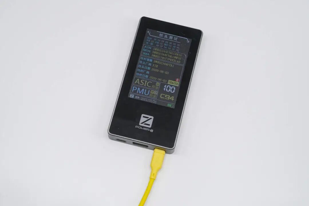 使用ChargerLAB POWER-Z MF001测试仪对线材的Lightning端子头进行检测,从测试仪的屏幕中可以看到,该款数据线ASIC、PMU均为原装C94元件,评分为100分。用户可以放心使用无需担心弹窗兼容性的问题。