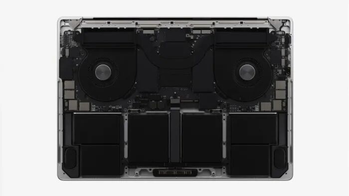 新的M1 Pro SoC是苹果对MacBook Pro 2021系列的重大硬件升级。如果M1 MacBook Pro让英特尔感到害怕,那么M1 Pro应该会让这家芯片制造商的噩梦更加严重,因为苹果今年大大升级了CPU和GPU。现在可以买到10核CPU,具有8个性能核心和2个效率核心,在GPU方面可选16核或32核GPU。两款MacBook Pro的内部都将配备两个风扇,以处理额外的热量,全新铝金属机身,内有先进散热系统,可在较慢风速下达成 50% 的换气效率提升。