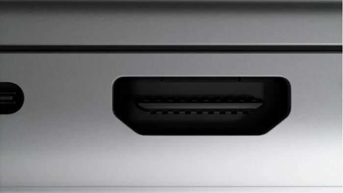 MacBook Pro 2021的机身比以前更平坦,但也略微更厚更重。接口方面提供了MagSafe充电连接头,两个Thunderbolt USB-C端口,以及左侧的耳机插孔,右侧有一个HDMI接口、SD卡插槽和另一个USB-C接口。
