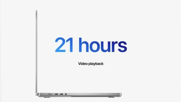 16英寸机型的视频播放时间为17小时,比以前的英特尔多7小时。14英寸机型则多10小时。支持快速充电。