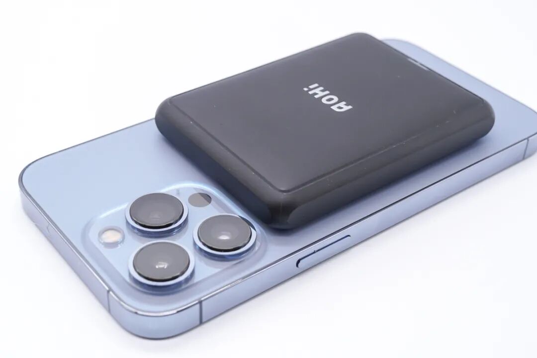 磁吸无线充电宝为iPhone 13在户外补电提供了新的使用方式,用户只需要将充电宝吸附在手机背面即可为手机充电,而且不用担心因为线圈对不准而无法充电。