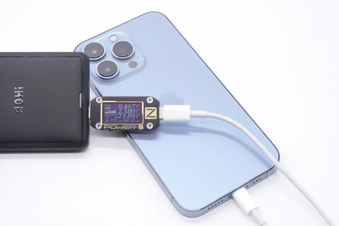 使用USB-C为iPhone 13 Pro充电,功率为8.46V 2.58A 21.84W。