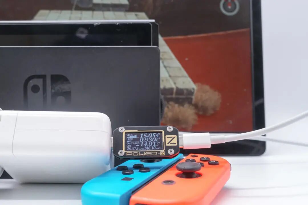 激活Switch的底座TV模式需要充电器支持15V3A快充档位,使用苹果67W PD充电器为Switch底座供电,充电器输出15V电压,成功激活Switch的底座TV模式。