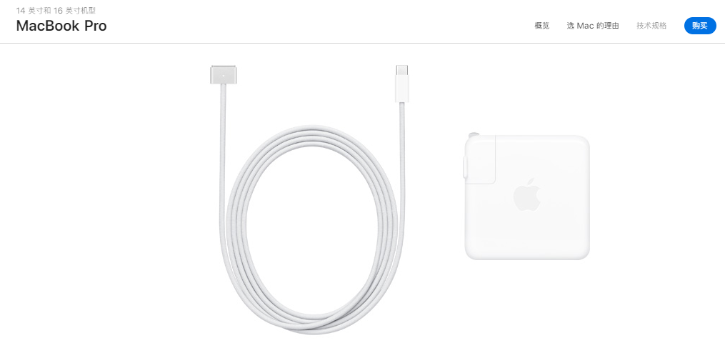 苹果此次共推出了14英寸和16英寸两款MacBook Pro,其标配的充电器也是不同的,其中16英寸MacBook Pro标配的是140W氮化镓充电器。