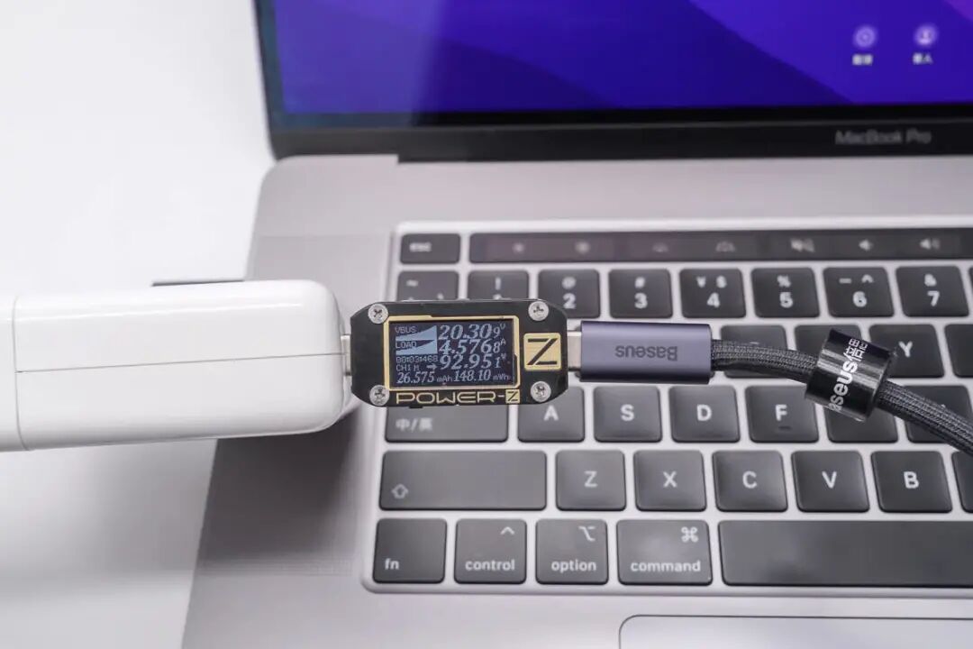 通过倍思 USB4 编织数据线为 MacBook Pro 16 M1 Max 充电,实测功率可以达到95.72W,充电功率表现正常。