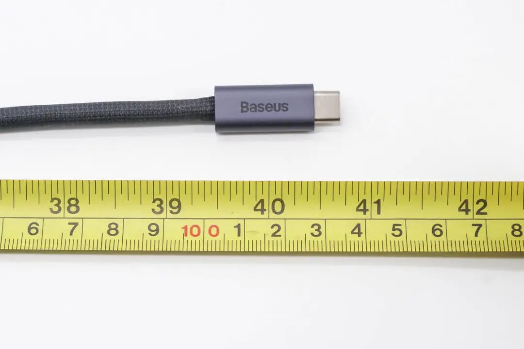 端子采用铝合金磨砂材质,印有 Baseus 的 logo,一体式的线尾处理,干脆利落。