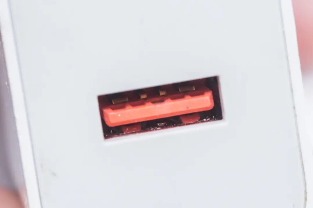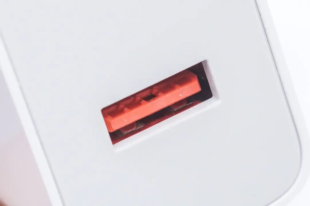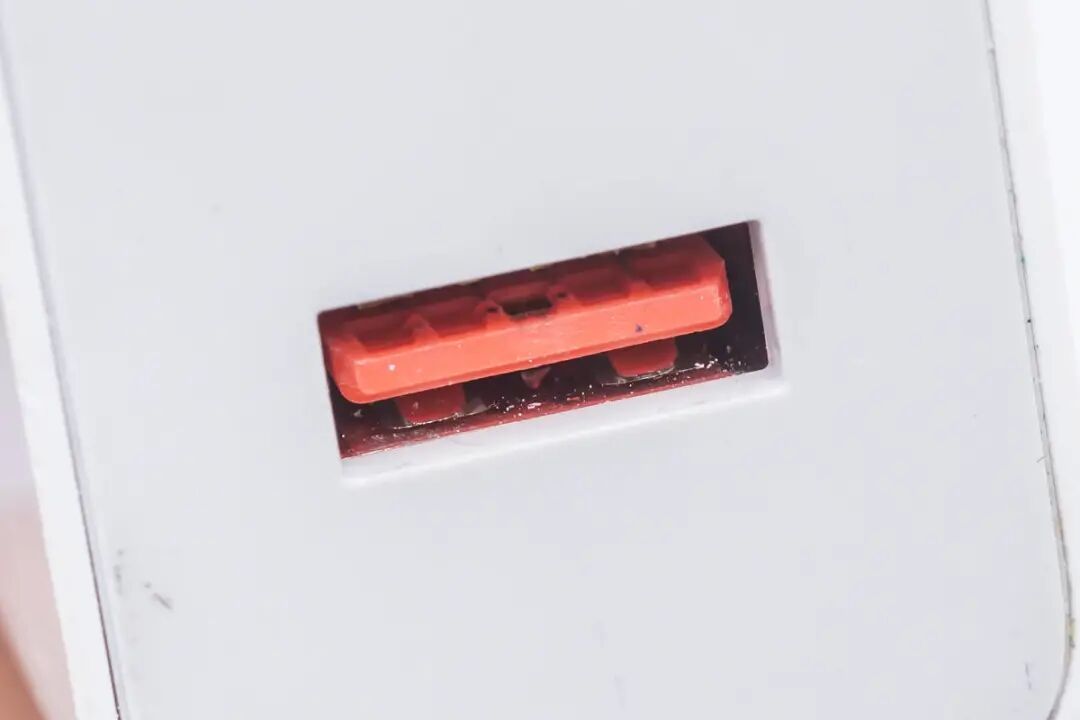 随机附赠的充电器采用 USB-A 输出接口,可以看见两侧的触点做了加宽处理。