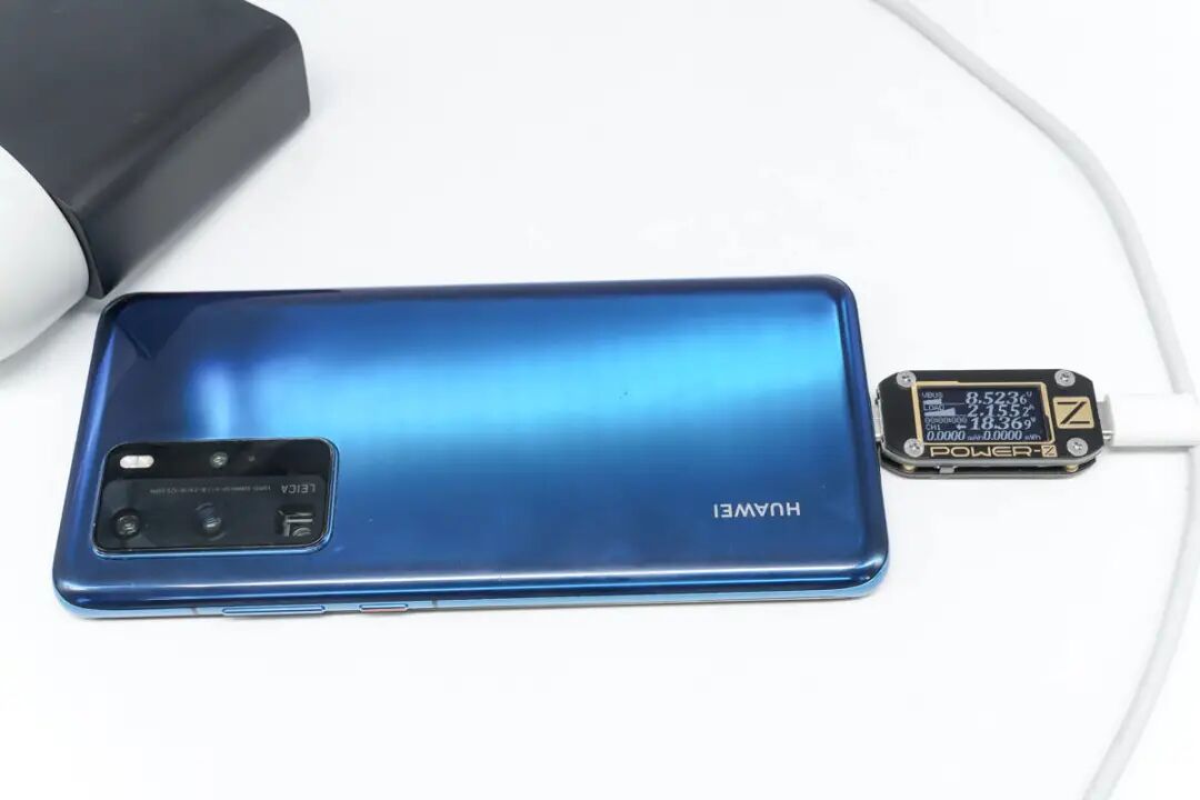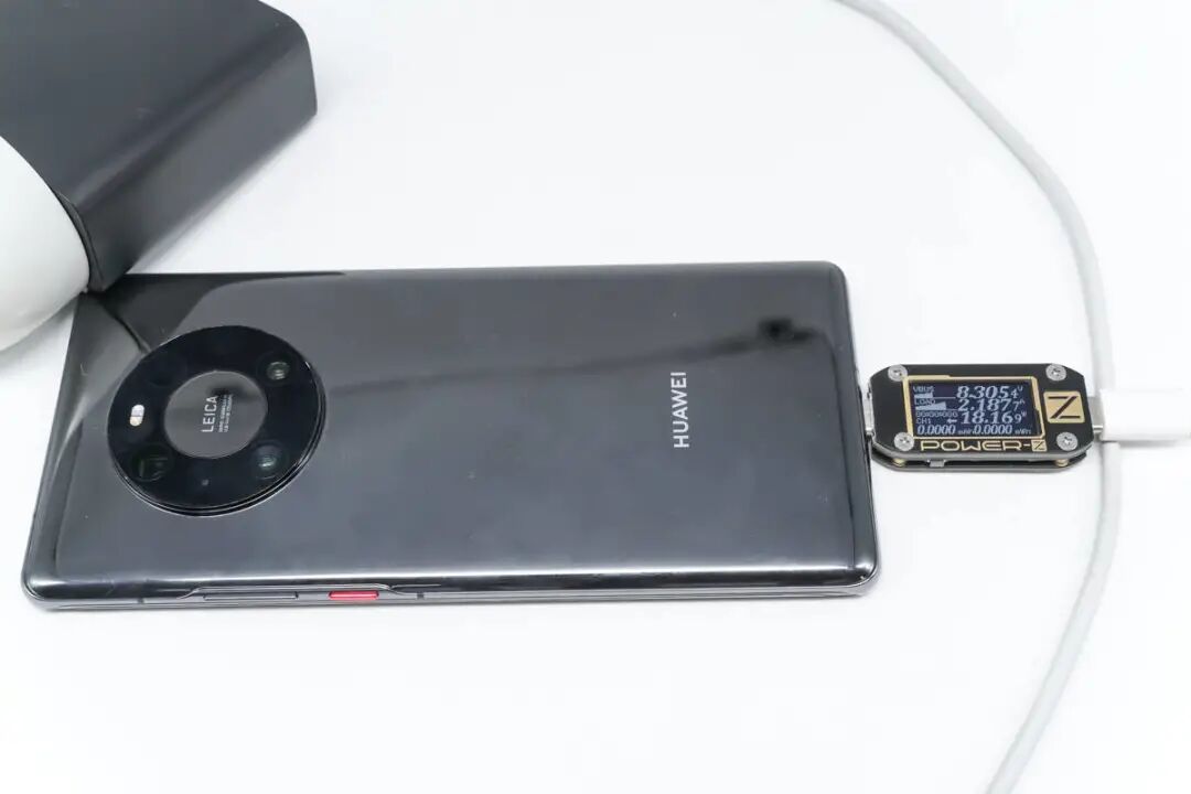 使用 USB-A 接口为华为Mate40 Pro 充电,功率约为 8.3V 2.18A 18.16W。
