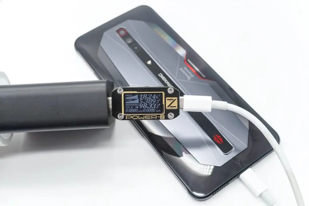 为红魔6 Pro 充电,功率约为 18.24V 5.38A 98.33W。