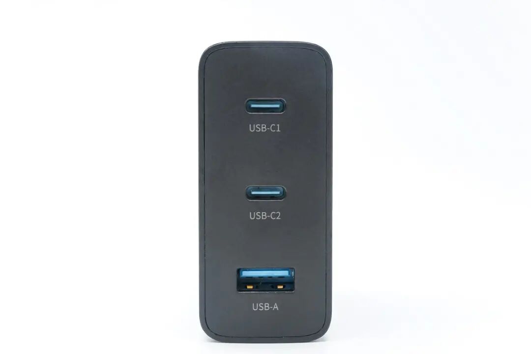 充电器采用2C1A三口配置,母口胶舌均为蓝色。
