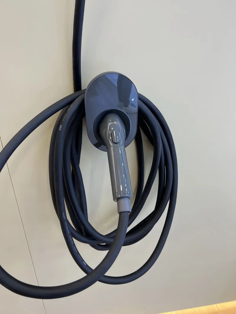 枪线长度为 7.3m,采用TPU 环保材料制作,有韧性且耐用,枪头内置温度检测功能,防止充电过热,并配有墙体盒方便卷绕线缆收纳。
