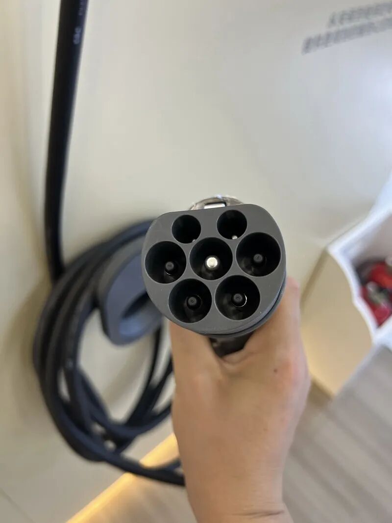 枪头采用国标 7 孔标准,支持市面上众多新能源汽车使用。性能方面,支持单相 220V 7kW、三相 380V 11kW 两种电力规格。