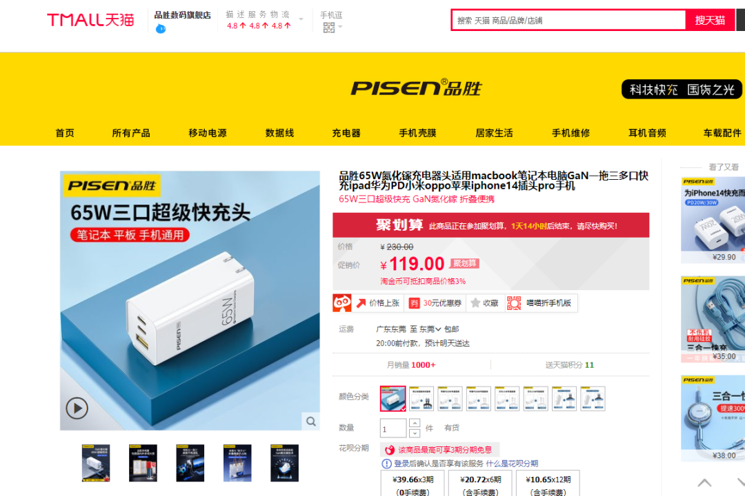 小米米家蓝牙温湿度计 2,能显示温度、湿度、舒适度,接入米家 APP 智能生态,能连接网关联动其它 AIOT 设备,自带纽扣电池与双面胶,方便粘附在墙壁、衣柜、室内外等不同地方。小米有品商城有售,原价 29 元,使用小米有品UP会员领取20元优惠券,做到 9 元包邮。领取方式:微信打开顺丰小程序,点开会员中心 - 生活特权,下拉就能看见 9 积分兑换一年小米有品 UP 会员。https://www.xiaomiyoupin.com/detail?gid=116724品胜 65W 2C1A 氮化镓充电器,使用新一代氮化镓方案制作,折叠插脚设计,三围尺寸 32*37*72mm,功率密度 0.76W/cm³。两个 USB-C 输出口支持功率盲插,单独使用时均支持 65W 输出,电压档 5V3A / 9V3A / 12V3A / 15V3A / 20V3.25A,并带有 3.3-20V3A 一组 PPS 电压子集。USB-A 支持 4.5V5A / 5V4.5A / 9V3A / 12V3A 四个固定电压档,最大输出功率 36W。天猫品胜数码旗舰店有售,原价 119 元,领取 30 元优惠券,实际到手价 89 元。