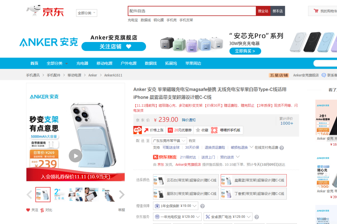 京东羽博 Yoobao 旗舰店有售,原价 109 元,领取 10 元优惠券,实际到手 99 元。https://item.jd.com/10056407544954.htmlhttps://go.smzdm.com/6027858216a57102/ca_aa_yh_0_61752170_15215_4013_171_0黑鲨散热背夹 Pro,采用电子制冷片散热方案,7 叶风扇,147 根散热柱,1秒快速降温,畅玩游戏不降频。内置 RGB 环形灯带电竞氛围十足,伸缩夹臂设计,支持“67-88mm”尺寸设备。黑鲨京东自营官方旗舰店有售,原价 109 元,秒杀价 99 元直接购买。https://item.jd.com/100006366587.htmlAnker 磁吸无线充电宝,5000mAh 电池满足短途出行需求,轻薄便携不累赘。内置 7.5W 磁吸无线充电模块,底部带有 USB-C 双向充电接口,功率 12W / 12W。云石白、晨雾蓝、星际灰、丁香紫四款配色可选,提供 24 个月免修包邮换新质保服务。京东 Anker 安克旗舰店有售,原价 239 元,领取 20 元优惠券,实际到手 219 元。https://item.jd.com/10052282998604.htmlhttps://go.smzdm.com/1f19887cdeafd1cd/ca_aa_yh_0_61761708_15215_7891_171_0