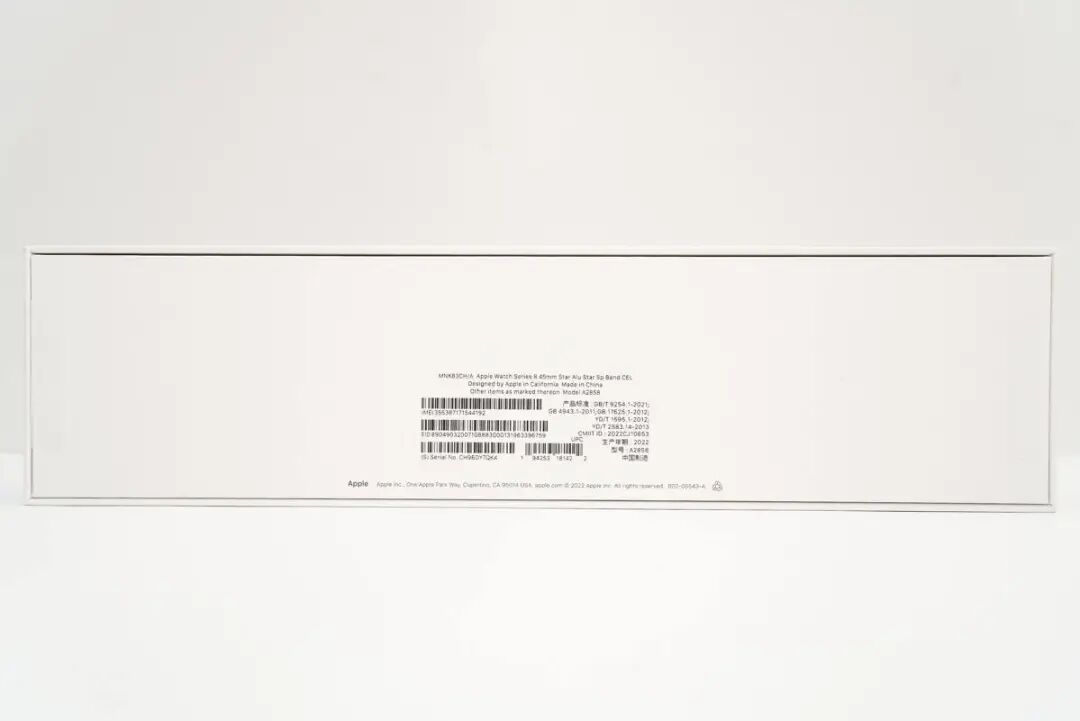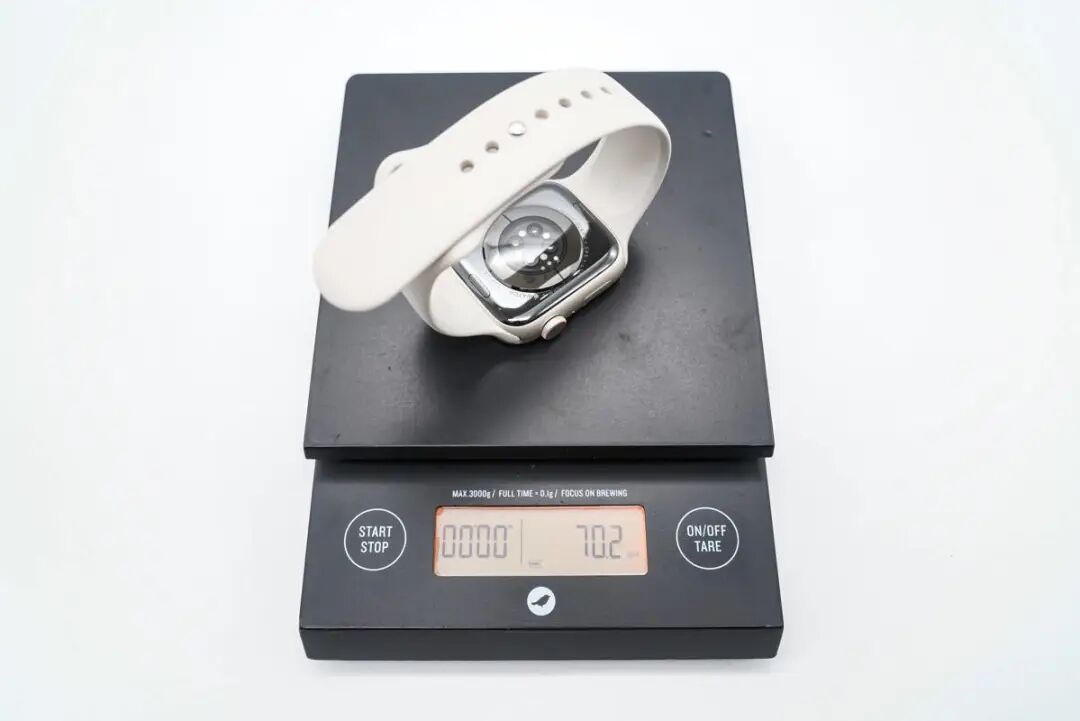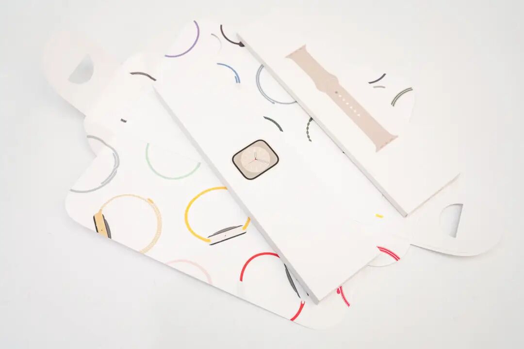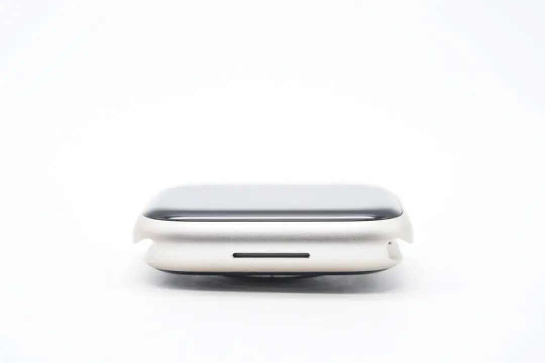 近日,苹果在秋季新品发布会带来了 Apple Watch Series 8 、新款 Apple Watch SE以及极限运动款的Apple Watch Ultra,前两款已于9月16日开放预定,并且拥有突破性新技术和性能表现,以及重要安全检测功能;充电头网也是第一时间拿到这几款产品,相较于前面评测的SE第二代,Apple Watch Series 8才是满血版,一起看看拥有哪些惊喜之处吧!此款Watch Series 8为官方蜂窝版,依旧为苹果一贯的简约风格设计,内部表壳与表带分开包装。表壳包装盒底部印有相关参数信息以及产品条形码。Apple Watch Series 8 45mm,型号:A2858。取出表壳内物件,除表壳外,另有Apple Watch磁吸充电线以及几张说明书、合格书等。根据不同的型号,Watch Series 8由铝或不锈钢制成,有41mm和45mm两种表壳规格选择;到手的这款为45mm规格,屏幕尺寸换算为1.9英寸,分辨率为484 x 396像素;支持长显功能以及更高的户外激发亮度。Watch Series 8侧边拥有长条型扬声器开孔。除正面的曲面显示屏外,拥有触觉反馈的红色内圈(蜂窝版)的数码表冠以及侧边按钮。Watch Series 8表背传感器区域外圈镭雕基本规格信息。Watch Series 8采用独特的双传感器温度感应设计,一个传感器位于表背贴近手腕处,另一个位于显示屏下方,可减少因外部环境导致的误差。Watch Series 8表背区域的上下两侧均设置在更换或取下表带时的开启按钮。Watch Series 8同样配置三条表带,其中两条卡扣孔表带拥有不同长度,方便用户根据手腕进行适配。表带为亲肤材质的硅胶材质,戴在成年男性手腕上如上。此款Watch Series 8 整体重量约为70.2g。Watch Series 8配套充电线材子端为USB-C端口,可适配市面主流的充电器。无线磁吸充电区域中间为凹陷设计,更好贴合表背;此前也有许多能给Apple Watch充电的产品,感兴趣的用户可以回看一下。对Watch Series 8进行充电测试,模拟用户日常取下充电时的场景。这是使用原装磁吸充电线和35W充电器进行充电,在前7分钟内为关机状态,充电功率基本稳定在2.5W左右,开机后以4.5W左右功率充电,持续6分钟后以0.14W左右功率充电;如此循环多次后,在35分钟时以2.8W左右功率持续充电并充电功率缓慢下降直至充电结束,总耗时1小时6分钟左右,最大充电功率为4.9W。