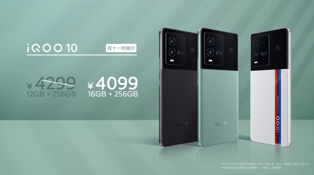 零售指导价 4299 元的 iQOO 10 12GB+256GB版本,现 iQOO 将其全新升舱为 16GB 超大内存,同时推出双十一惊喜价格,仅售4099元。
