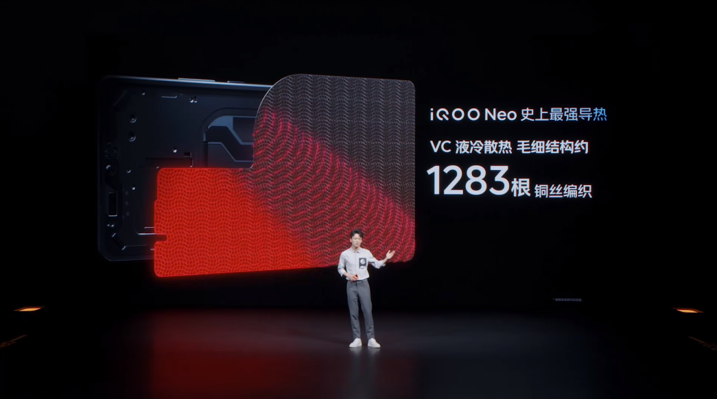 如此亮眼的充电表现离不开 Neo7 的强悍散热,Neo7 拥有 iQOO Neo 史上最大面积 VC 散热板,面积升级至惊人的 4013 平方毫米,是 Neo6 的 167%,妥妥的行业第一梯队。