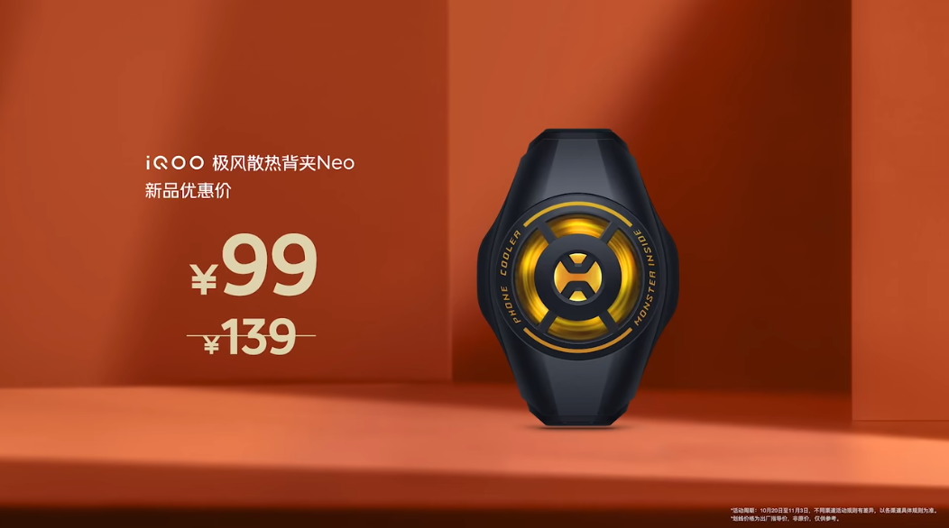 iQOO 极风散热背夹Neo 单品售价139元,同样可享新品优惠,到手价99元。